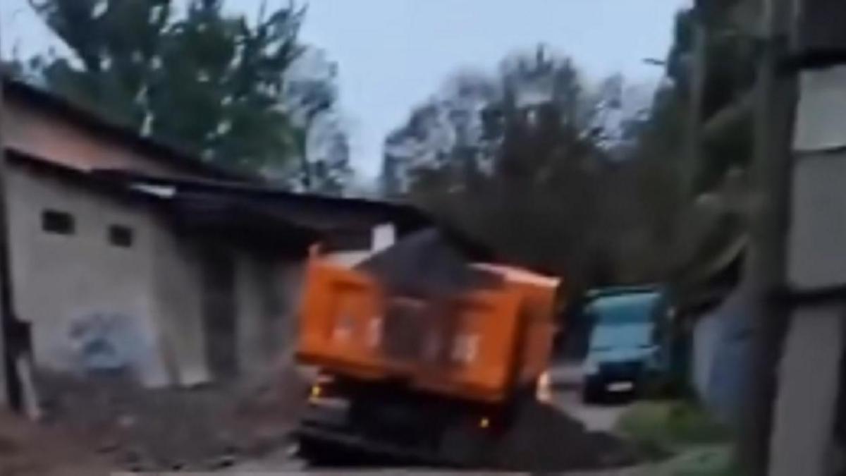 В Telegram-канале CMN_KZ опубликовали информацию о том, что в Алматы на улице Курдайской самосвал с грузом якобы провалился под асфальт из-за непогоды. Часть сыпучей смеси попала на проезжую часть.