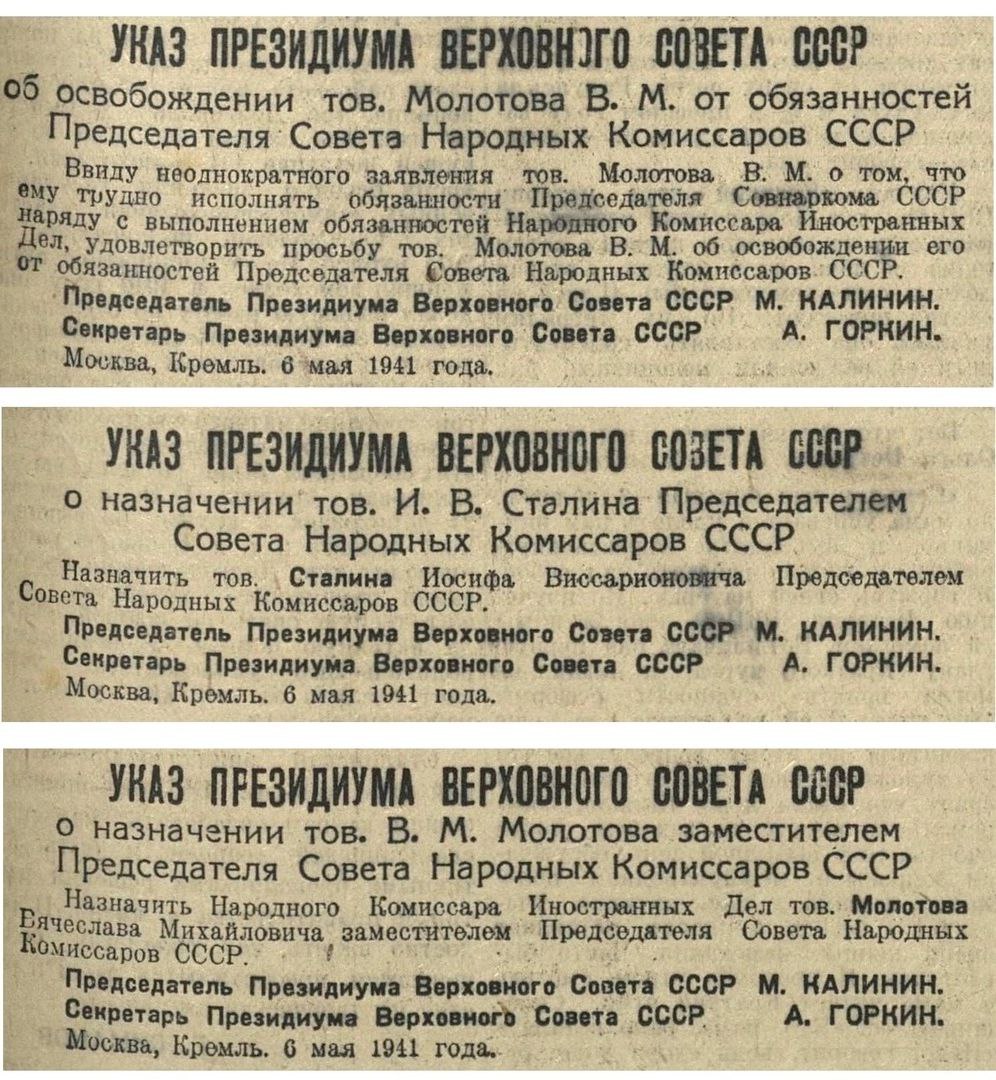 ➖ А третьим указом Вячеслав Молотов был назначен Заместителем Председателем Совета Народных Комиссаров СССР.
