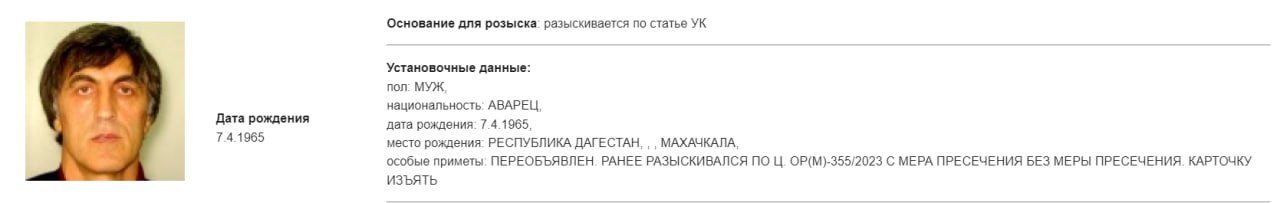❗️МВД России объявило в розыск экс-депутата Госдумы иноагента Магомеда Гаджиева по статье УК