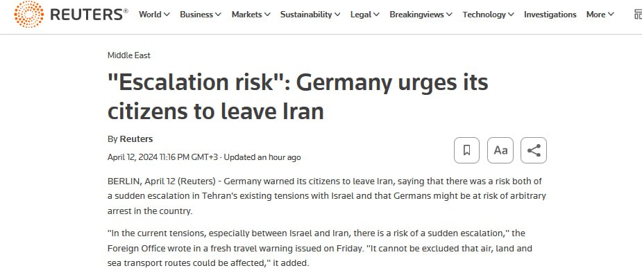 🇩🇪🇮🇷 Германия призвала своих граждан немедленно покинуть Иран