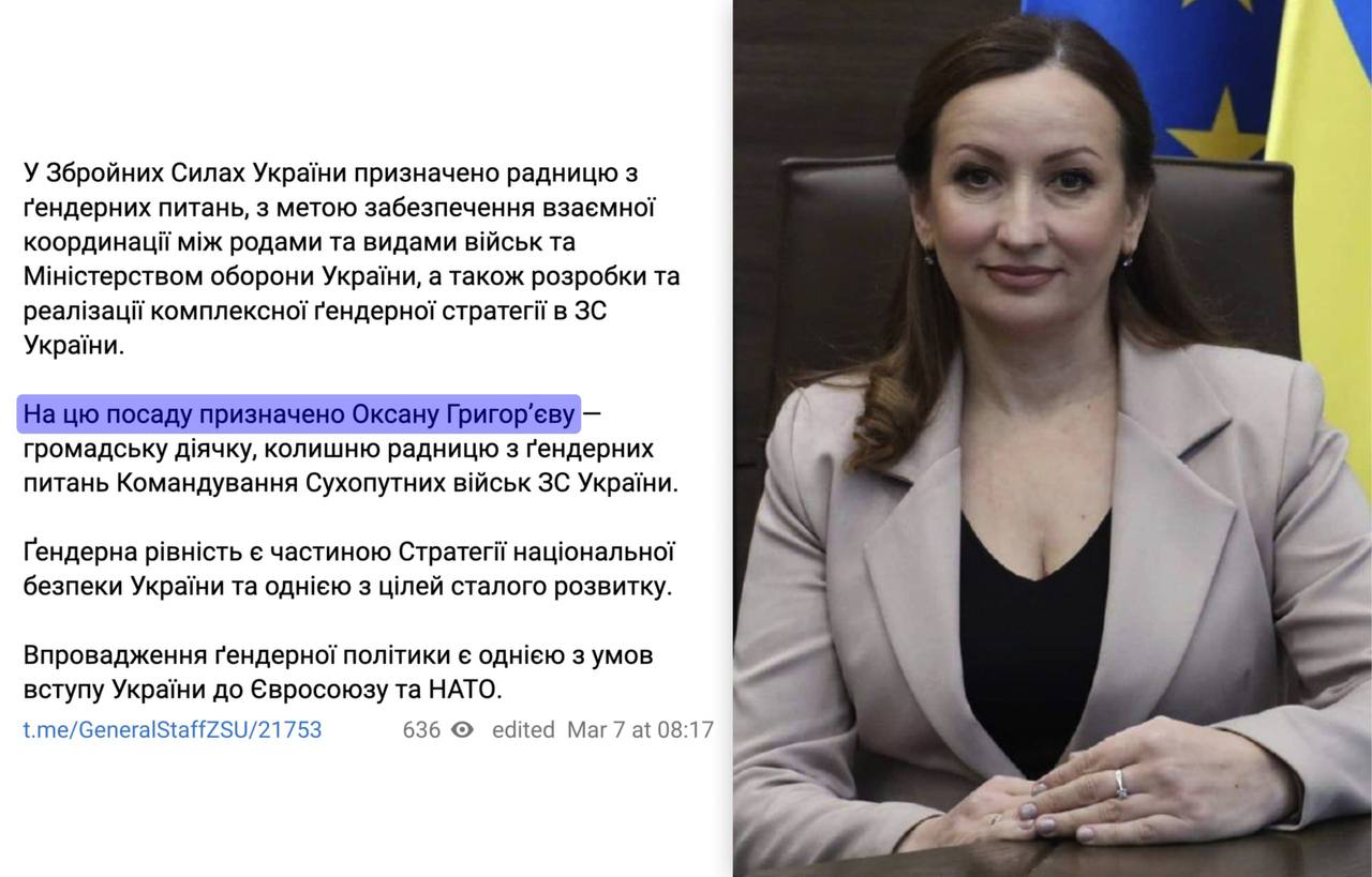 ⚧️В ВСУ появилась советница главкома Сырского по гендерным вопросам.