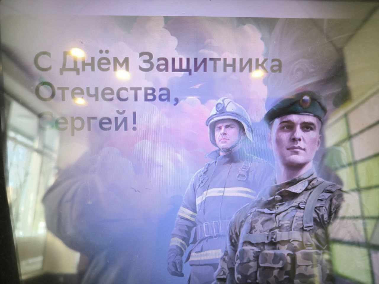 Сбербанк выдал мне сегодня вот такое поздравление с днём защитника Отечества. Молодцы! А ещё говорят, что Греф не патриот? А Греф то оказывается патриот и дал приказ всех поздравлять с днём защитника Отечества. Молодец!