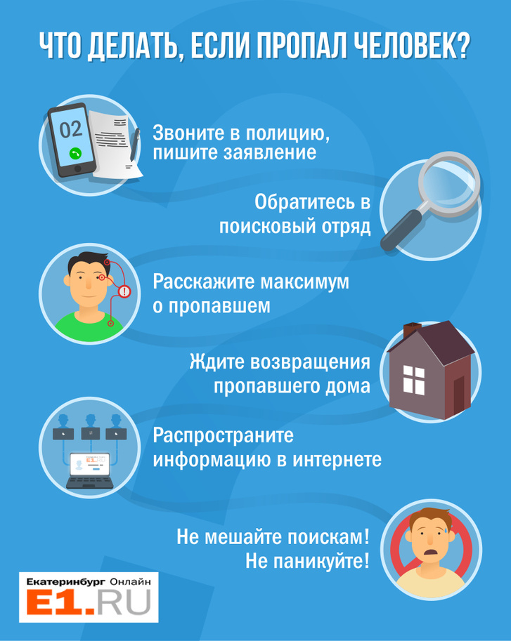 В Екатеринбурге нередко пропадают люди, и те, кто занимается поисками, выработали алгоритм действий на случай исчезновения. Прочитайте, что нужно делать, если ваш близкий человек не выходит на связь.