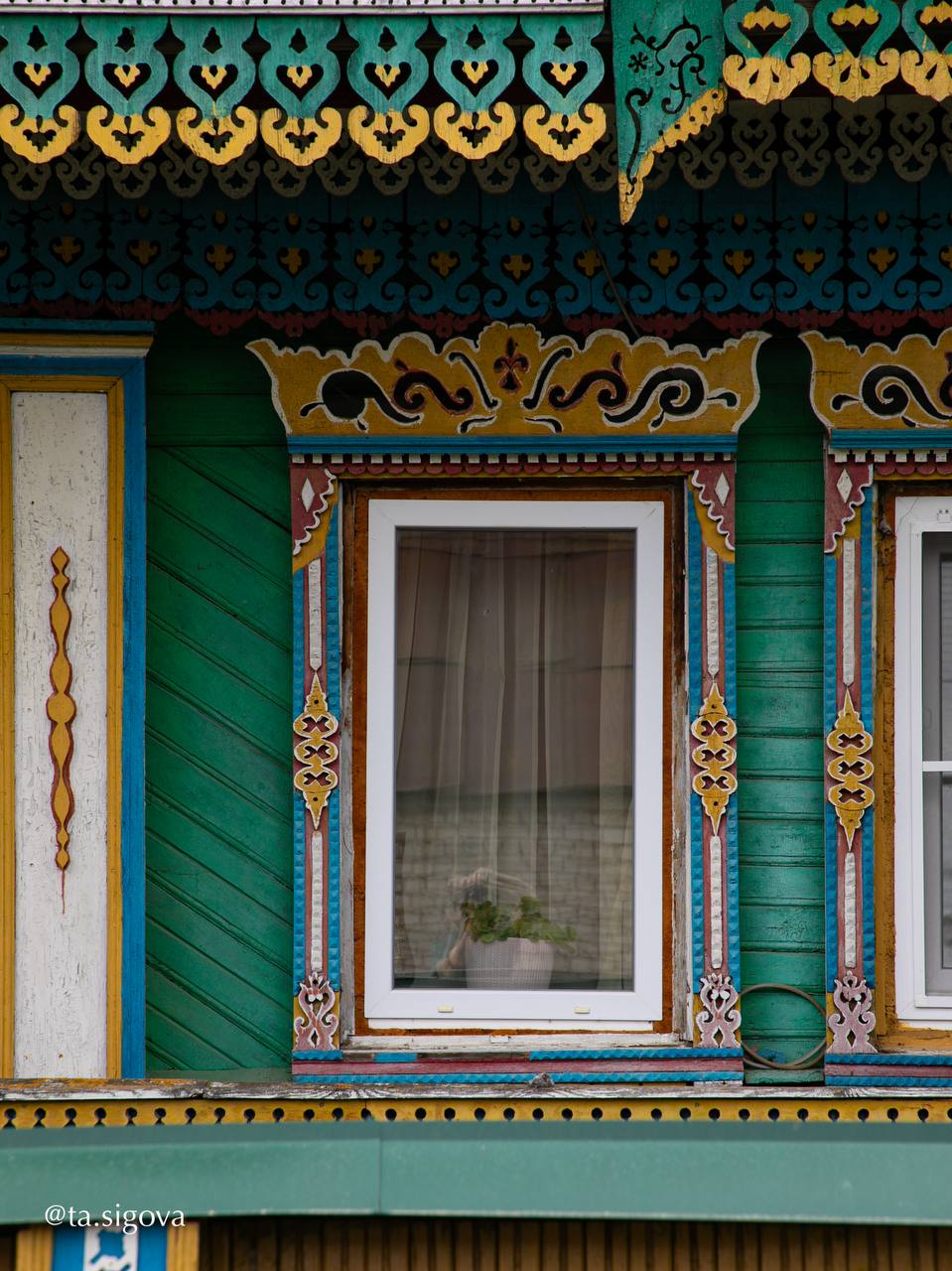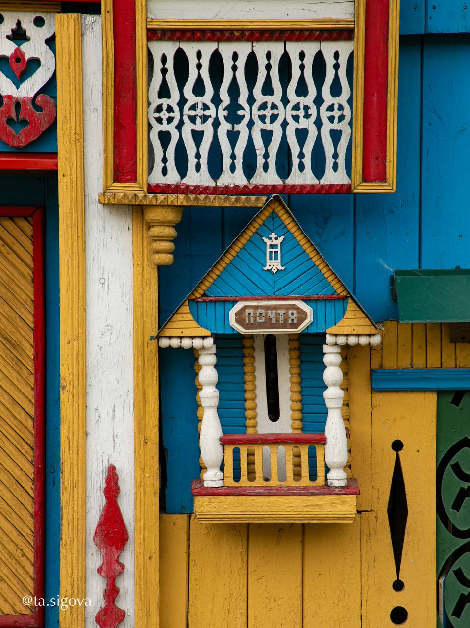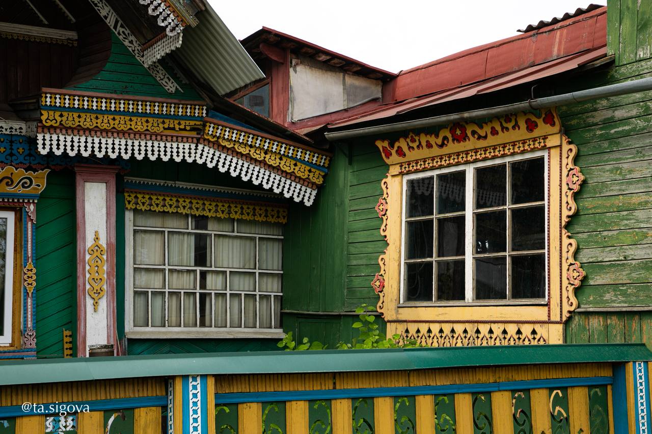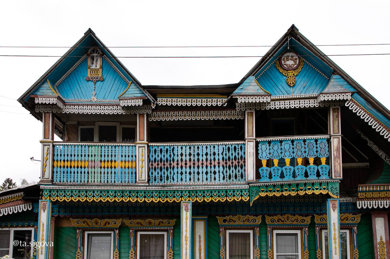 В середине XX века местный житель Михаил Колохин создал настоящую сказку своими руками. Его дом в селе Богородское Ивановской области поражает яркими кружевными наличниками, нарядной резьбой и геометрическими орнаментами, превращая обычный деревянный дом в произведение искусства.