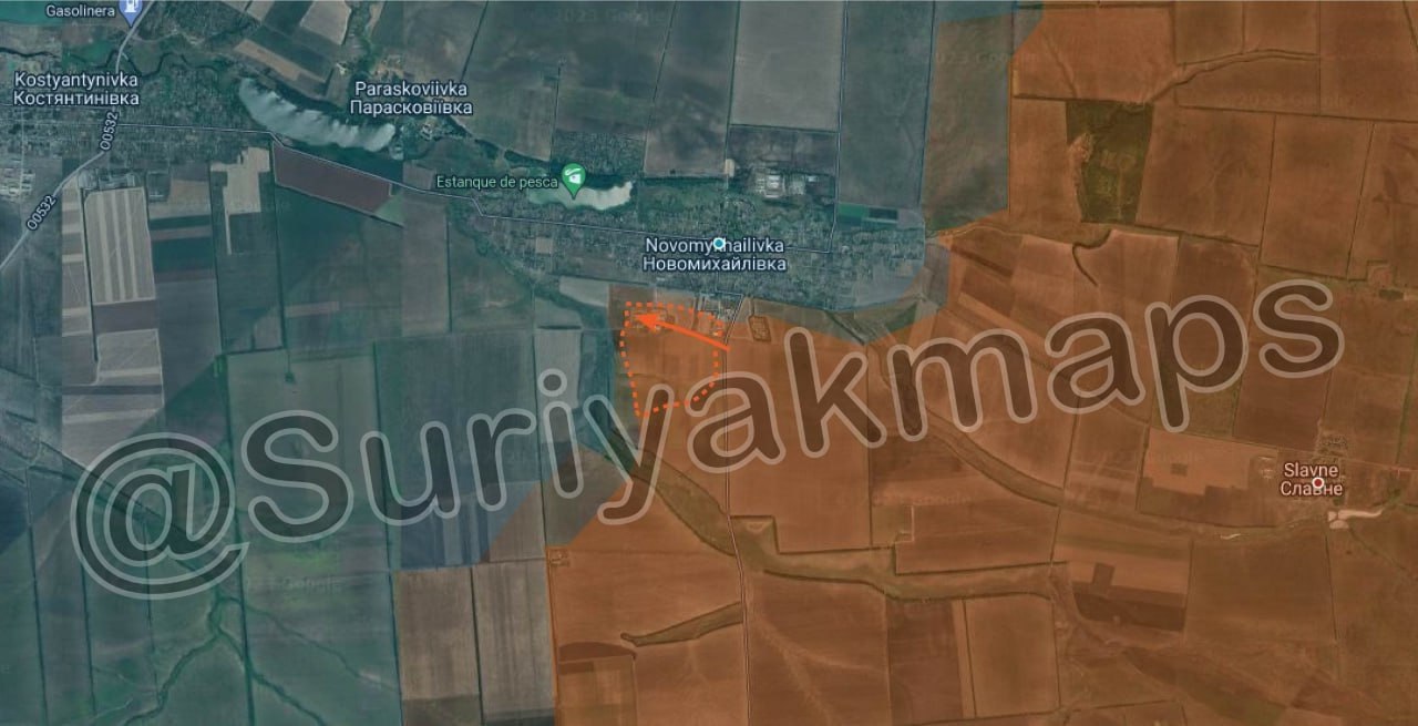 Российская армия расширяет зону контроля Новомихайловки с юга.