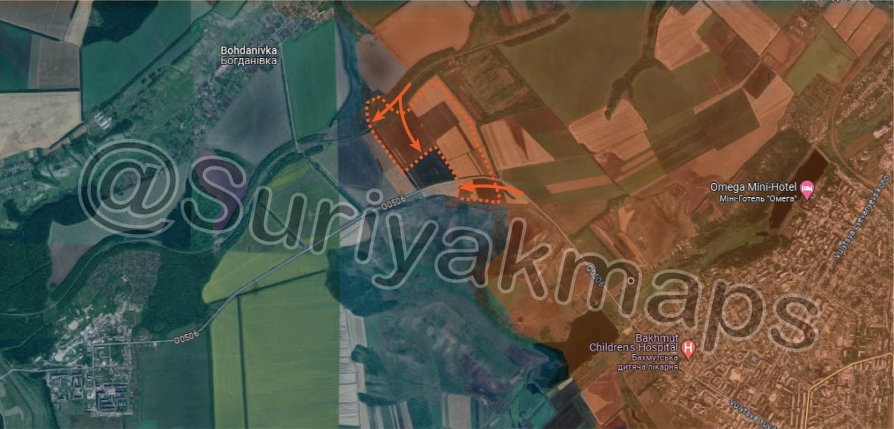 На бахмутском направлении российские войска наступают в различных направления. К югу от города есть продвижение в лесном массиве, также наши вошли в Клещеевку. К северу от Бахмута расширена зона контроля трассы Бахмут-Часов Яр.