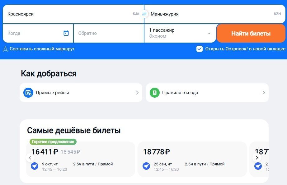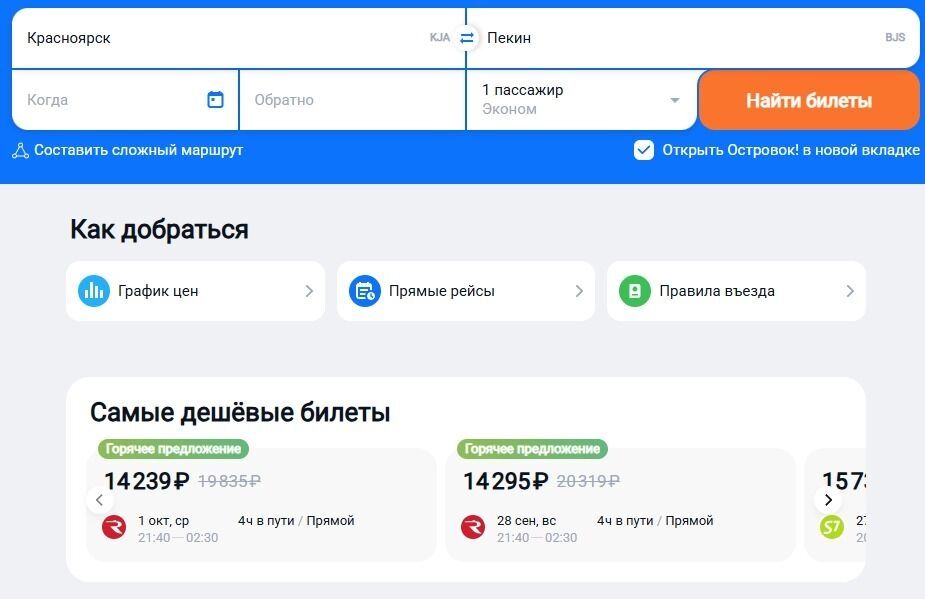 Из Красноярска прямым рейсом можно улететь в четыре китайских города. Цены на билет в одну сторону по «горячим» предложениям превышают 13 тысяч рублей.