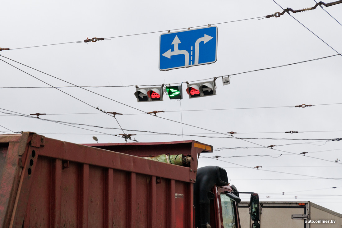 — Почему поменяли — я не знаю, но вариант, на мой взгляд, был более удачный. Свои трудности у него тоже есть: при повороте направо на проспект Машерова нужно сразу пересекать пешеходный переход. Если идут люди — автомобили останавливаются. Соответственно, запирается полоса и для тех, кто поворачивает, и для тех, кто хочет ехать прямо. Как можно решить эту проблему? На пешеходном переходе идет зеленый цикл светофора — машины стоят. А когда у пешеходов красный, автомобильному потоку загорается разрешающий сигнал. И все едут без задержек. Или чтобы пешеходам раньше загорался красный сигнал светофора, а автомобилям продолжал гореть зеленый, — предлагает ведущий рубрики.