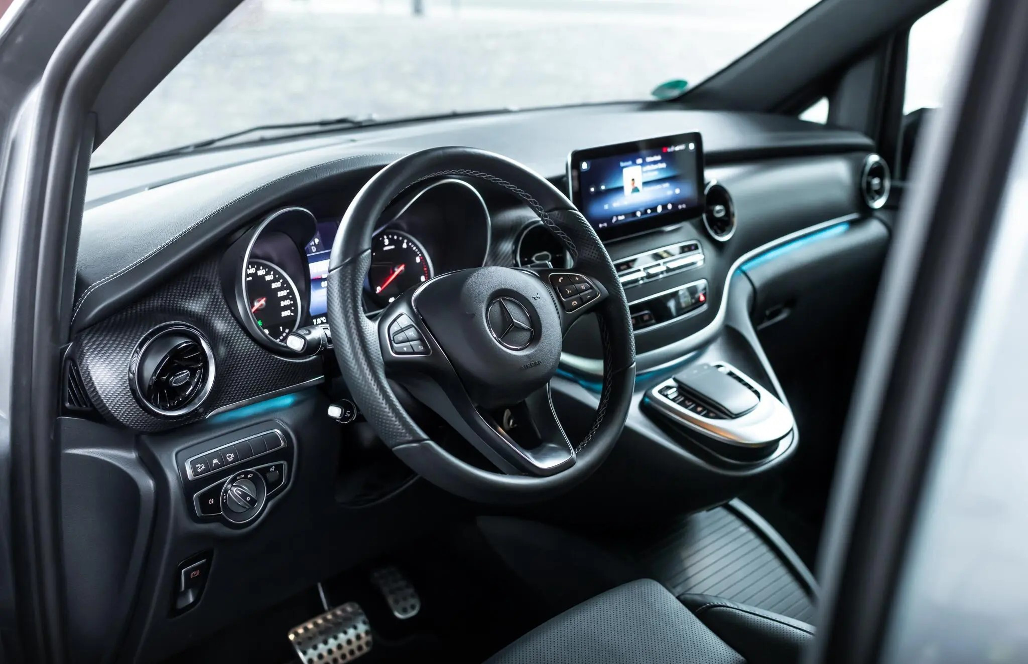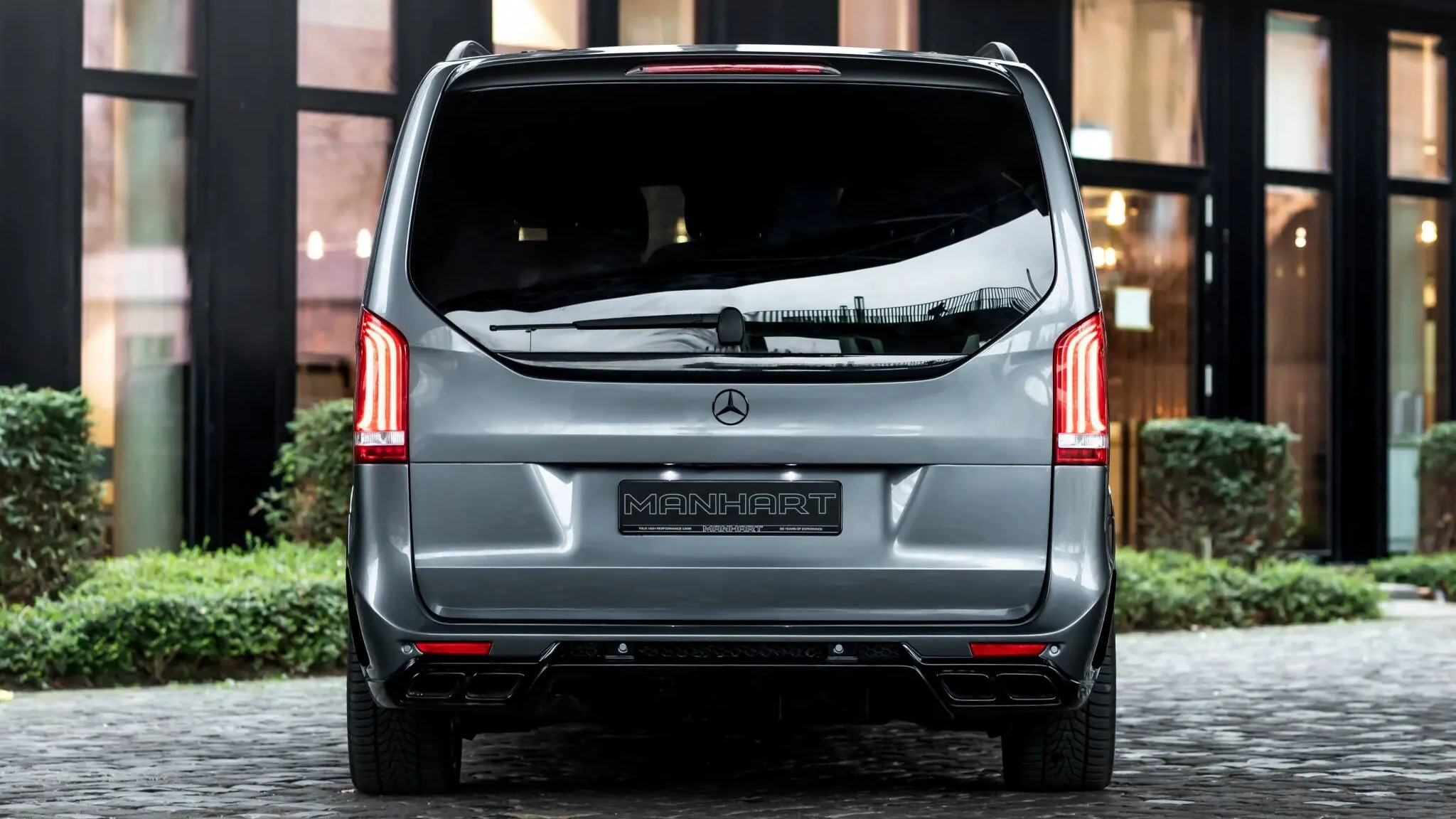 Компания Manhart Performance системно минвэнами не занимается, поэтому кузовной обвес для V-класса она заказала у коллег из ателье TopCar Design — речь идёт о довольно свежем комплекте деталей Inferno, выполненных из углепластика в эстетике Mercedes-AMG. В комплект входят новый капот с двумя продольными рёбрами, новый передний бампер с развитыми воздуховодами, новая радиаторная решётка, накладки на пороги и колёсные арки, новый задний бампер с боковыми «жабрами», диффузором и «четырёхстволкой» выхлопа.