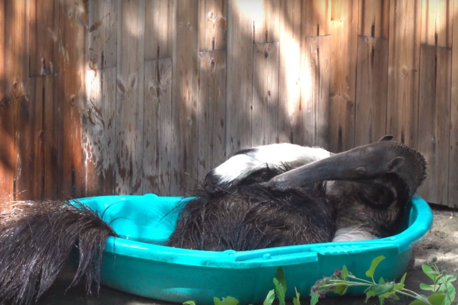 Муравьед Майя искупалась в ванне в Новосибирском зоопарке — такое вы точно ни разу в жизни не видели