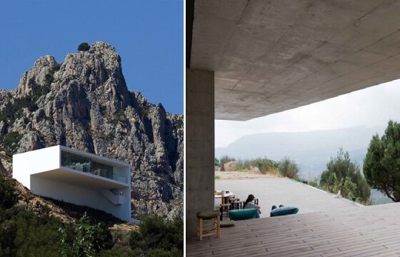 Дом-лабиринт из белого бетона ярко выделяется на горном склоне (House on the Cliff, Испания).