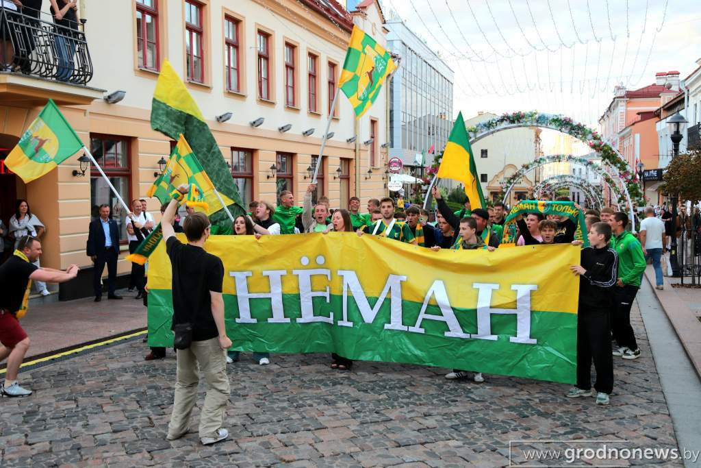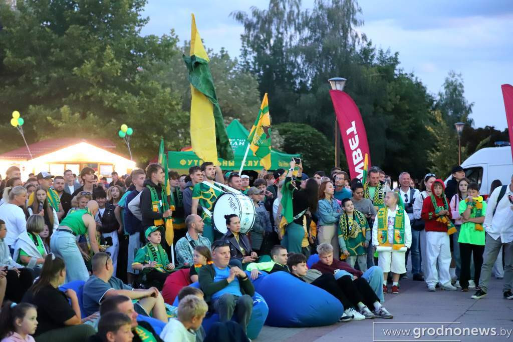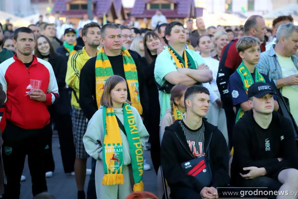 Матч с «Райо» проходил в венгерском Сегеде: здесь гродненцы в еврокубках принимают своих соперников в качестве номинальных хозяев, при пустых трибунах. А теперь посмотрите, какая атмосфера была в Гродно, где матч транслировали в центре города на большом экране.
