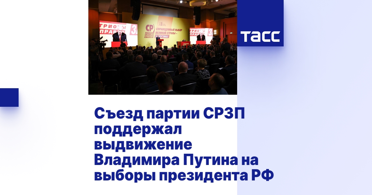 МОСКВА, 23 декабря. /ТАСС/. Съезд партии "Справедливая Россия - За правду" (СРЗП) поддержал выдвижение действующего главы государства Владимира Путина в качестве кандидата на выборы президента РФ в 2024 году. Об этом сообщает корреспондент ТАСС.