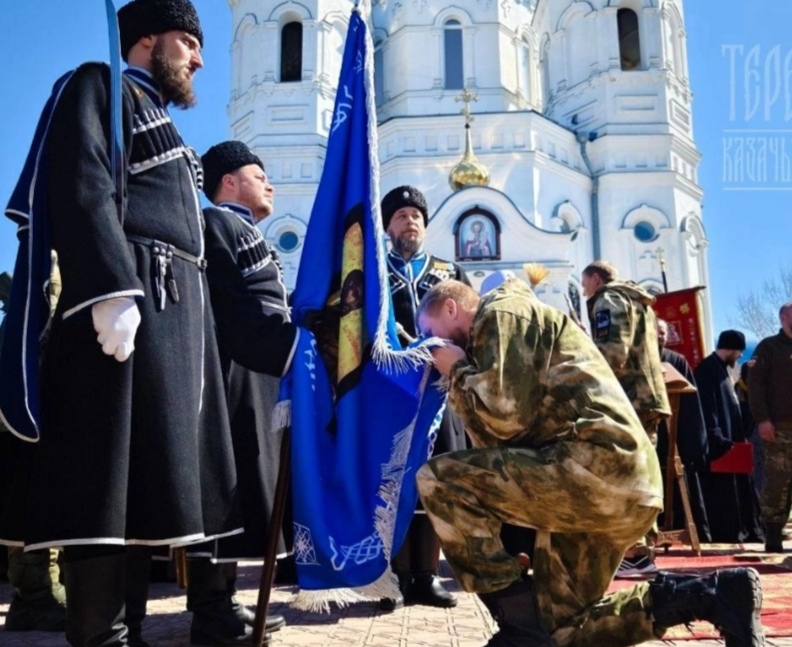 Казаки дали торжественное обещание перед Богом и совестью защищать святую Русскую православную церковь, родную Отчизну и казачьи традиции.