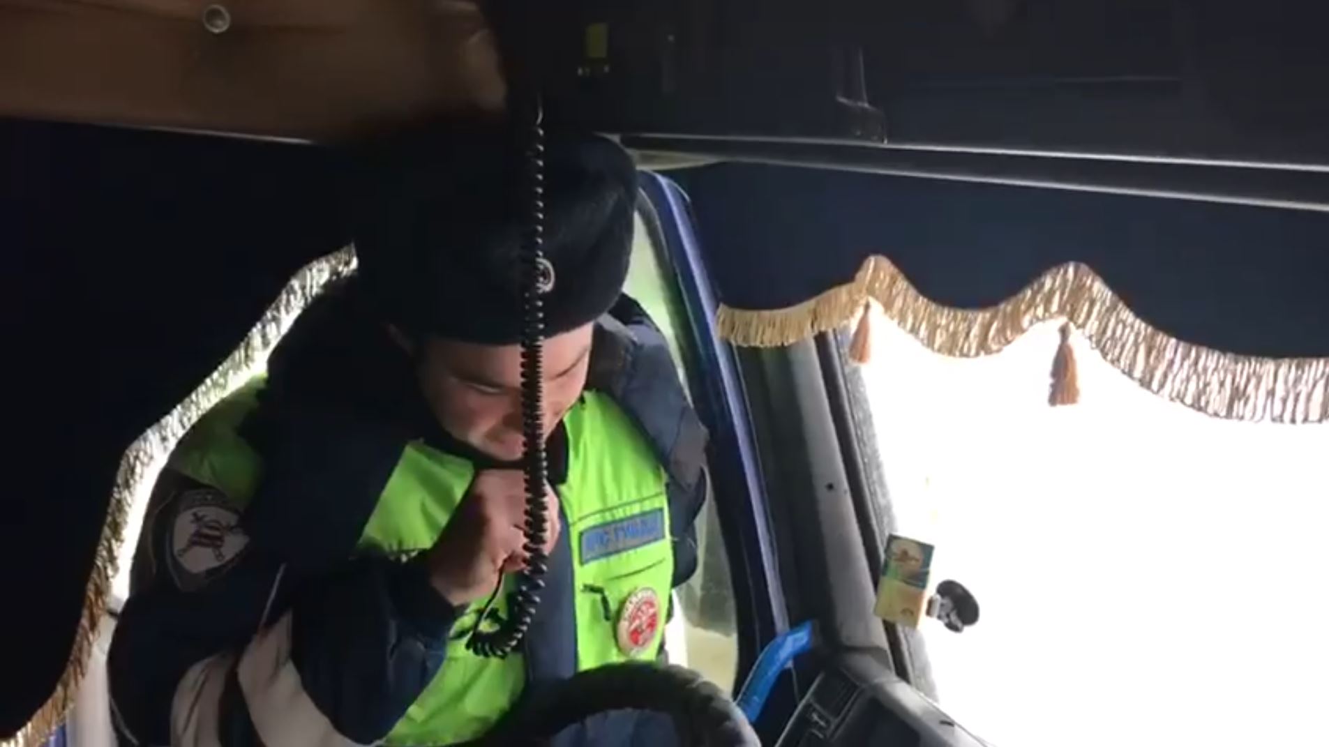 Инспекторы Госавтоинспекции в Тульской области активно используют громкоговорящие устройства для призыва водителей грузовых транспортных средств к временной стоянке в связи с интенсивным снегопадом.