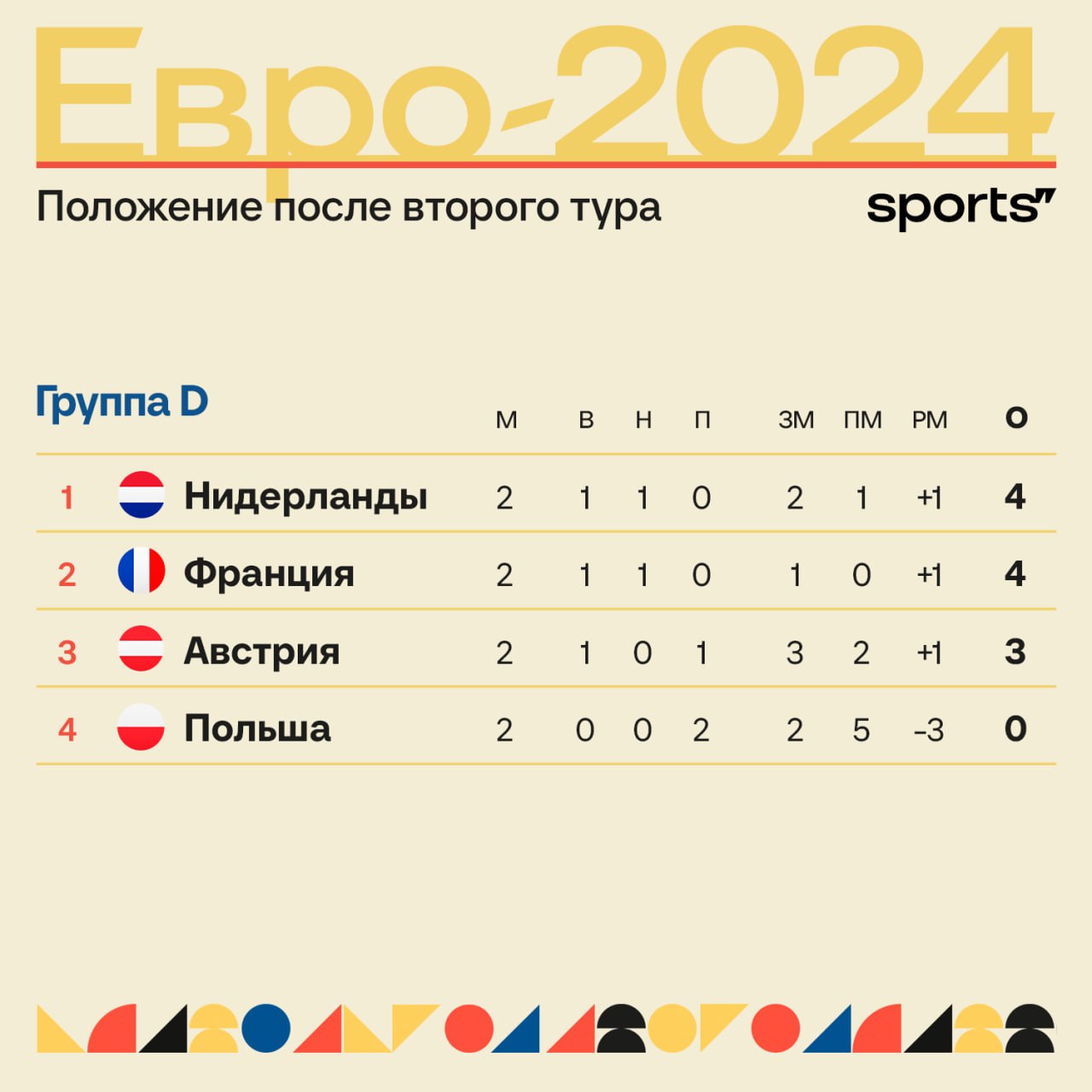 Положение в группе D после двух туров – с Польшей уже попрощались!