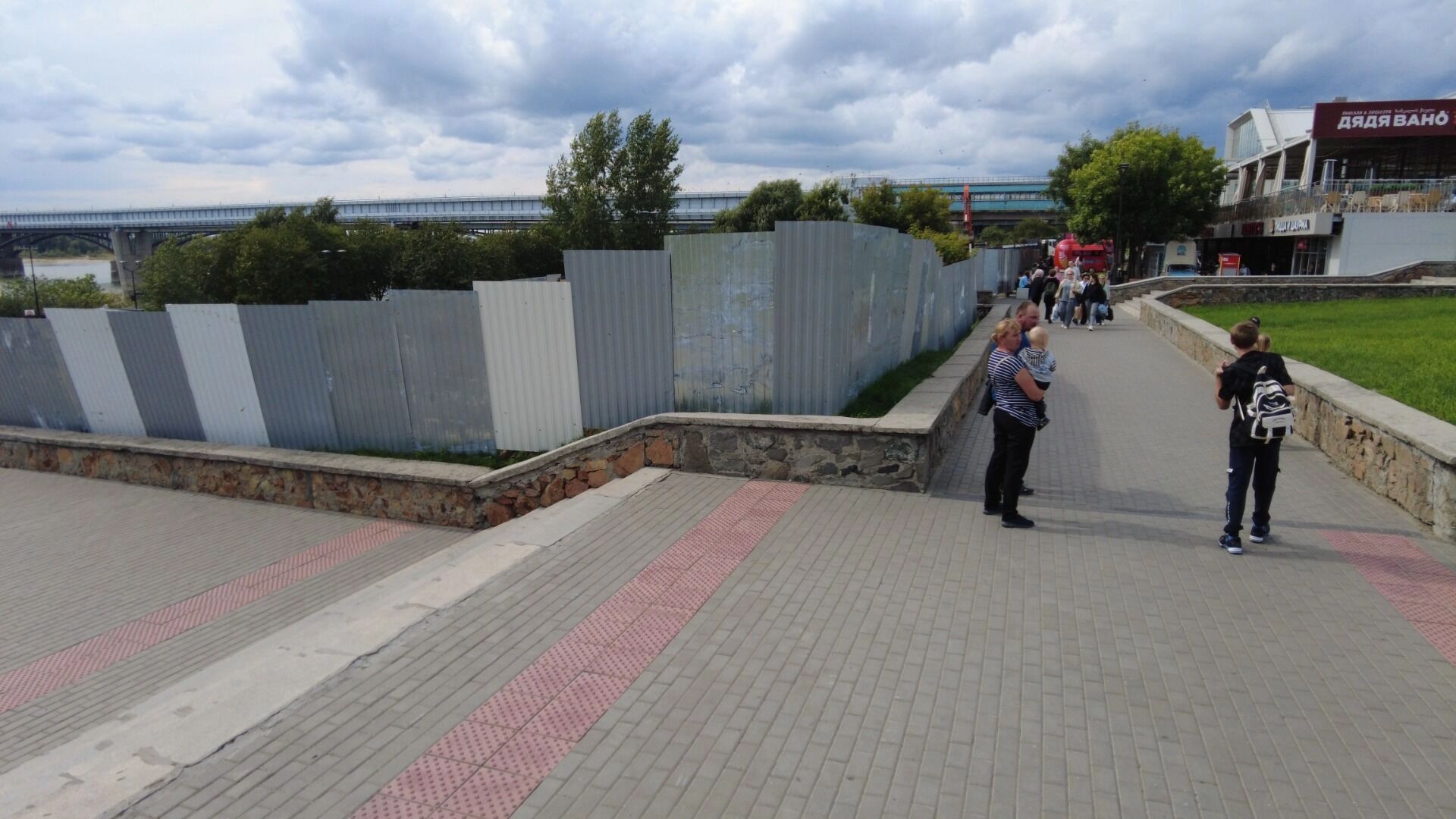 Ремонт идет на участке от метромоста до колеса обозрения. Из-за этого привычный спуск по лестнице, ближайшей к остановке общественного транспорта «Речной вокзал», закрыт. Чтобы спуститься вниз, необходимо идти до лестницы напротив центральной сцены.