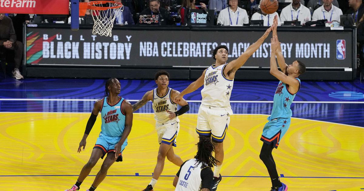 Jusqu'ici, les joueurs qui participaient au Rising Stars, les matches entre éléments dans leur première ou deuxième année en NBA, ne s'affrontaient qu'entre eux, le vendredi. Mais cette année, la ligue nord-américaine offrait au gagnant de cette phase une place parmi les étoiles du All-Star Game, le dimanche. Le billet a été cueilli vendredi par la Team C, parrainée par l'ancien shooteur diabolique Chris Mullin, ex-vedette locale sous le maillot des Golden State Warriors.