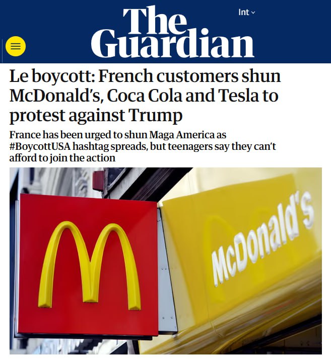 «Более шести из десяти французов поддерживают отказ от американских продуктов, а почти каждый третий уже избегает их», – пишет The Guardian со ссылкой на данные опросов.