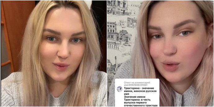 Из ролика, который прямо сейчас вирусится в TikTok, осталось непонятно, как все-таки родители назвали дочку. Комментаторы предлагали свои варианты — вплоть до Тракторины. Но все оказалось проще. В следующем видео мама рассказала, что девочку назвали Теоной. Имя легко гуглится. Так зовут, например, российскую актрису Теону Дольникову, которая сыграла немало ролей в театре и кино.