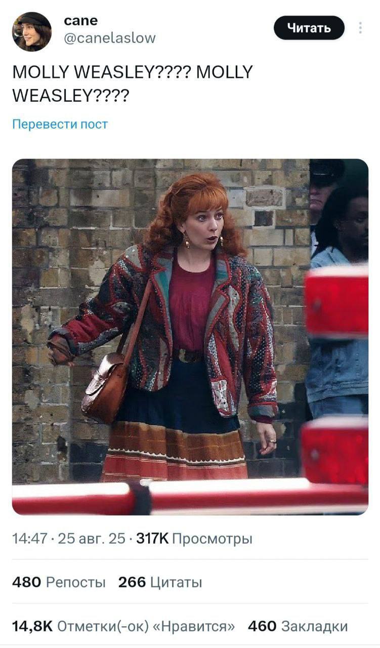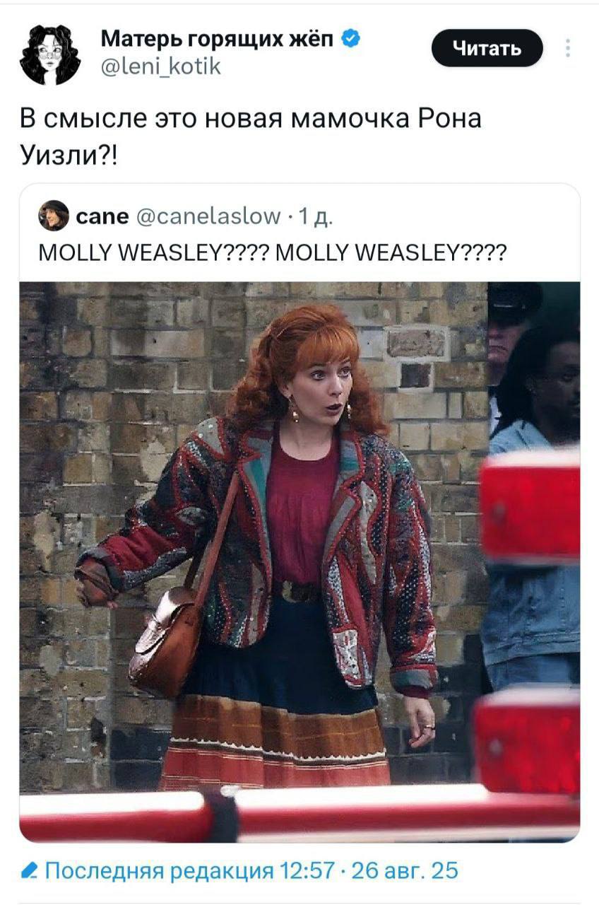 Даша Букина стала Молли Уизли? В сети хайпят кадры первого выхода матери Уизли в новом сериале от HBO.