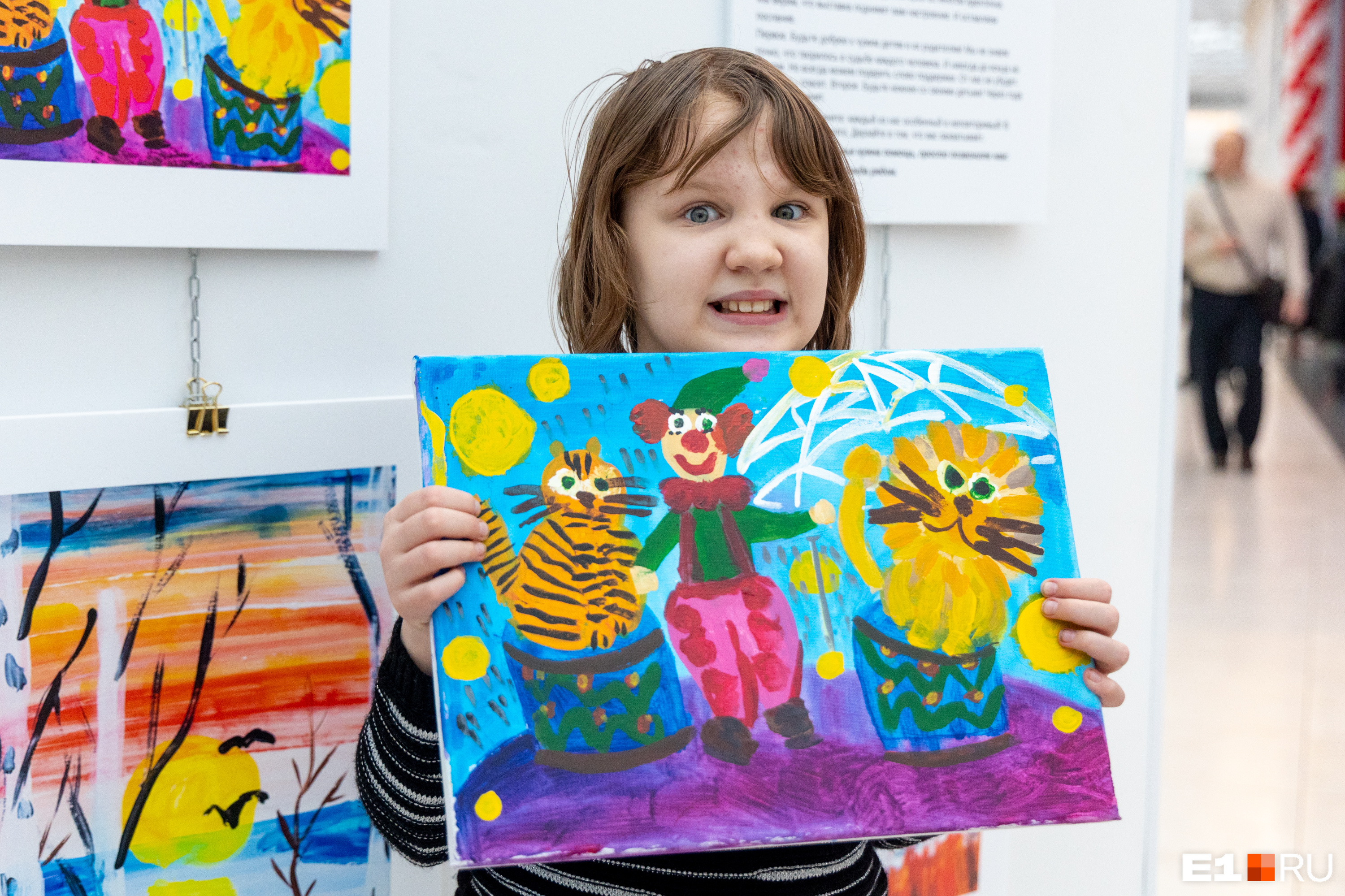 Милене Галызовой-Цевиной десять лет, у нее задержка психоречевого развития с аутистическими чертами, легкое когнитивное расстройство. Для конкурса Милена изобразила Екатеринбургский цирк — яркие цвета, узнаваемый купол, клоуна и животных.