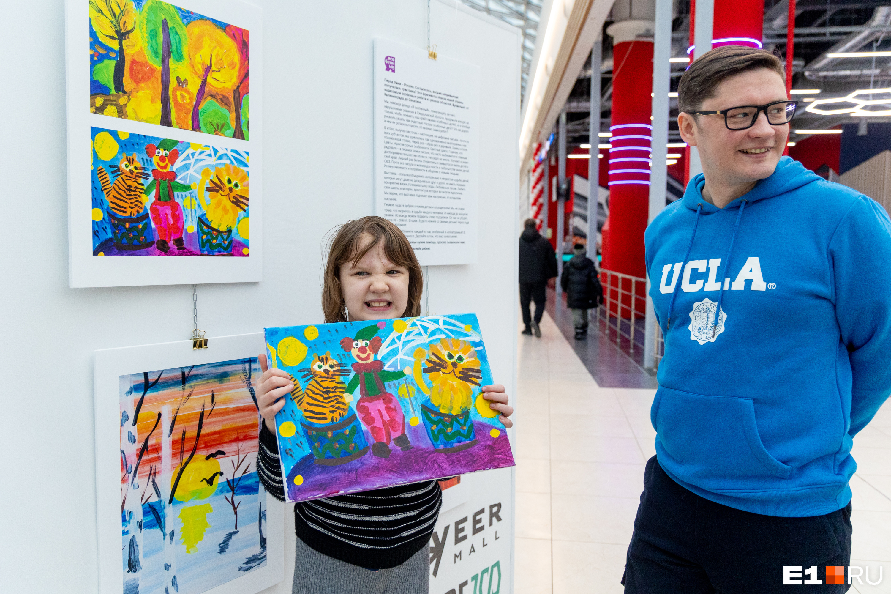 — Милена первый раз была в цирке, ей очень понравилось! — рассказывает Юрий, папа девочки. — Особенно тигры. Может показаться, что справа лев, но на самом деле это наш кот Тимоша. Дочка его очень любит, у него даже есть отдельный портрет. Рисовали с нашим тьютором и педагогом от фонда Натальей Игоревной, которая и раскрыла талант дочери к рисованию.