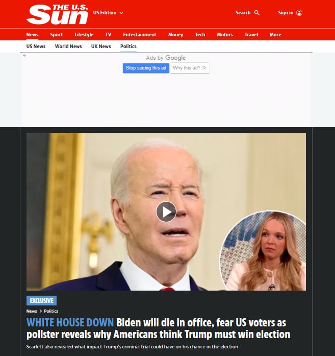 Скарлетт Магуайр, директор социологической компании JL Partners, рассказала The Sun, что результаты опроса показали, что многие американцы беспокоятся о возрасте Байдена.