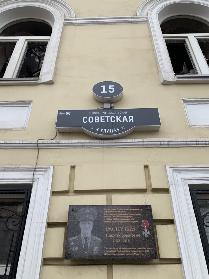 В Туле на здании сгоревшего в январе госпиталя Министерства обороны России «открыли» табличку погибшему в Сирии Николаю Распутину. Он ушел из жизни в марте 2018 года.