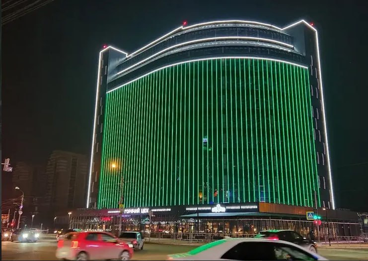 В Красноярске бизнес-центр на Взлетке украсили подсветкой