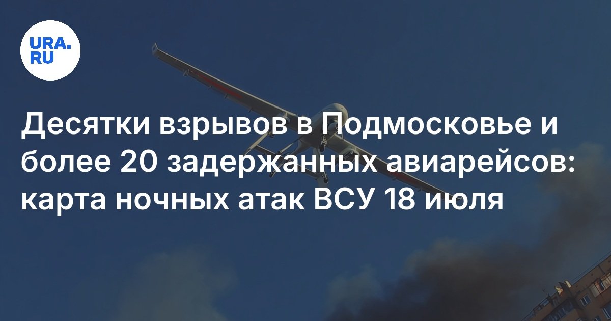 В ночь с 17 на 18 июля ВСУ предприняли масштабную атаку беспилотниками на семь регионов России. В частности, на Москву, Брянскую, Орловскую, Нижегородскую, Воронежскую, Смоленскую, Калужскую области, Республику Крым, а также акватории Азовского и Черного морей. По данным Минобороны РФ, средства ПВО уничтожили 73 БПЛА самолетного типа. На фоне атак в нескольких аэропортах страны вводились временные ограничения, а на Крымском мосту образовались пробки. Карта ударов украинский дронов по территории России — в материале URA.RU.