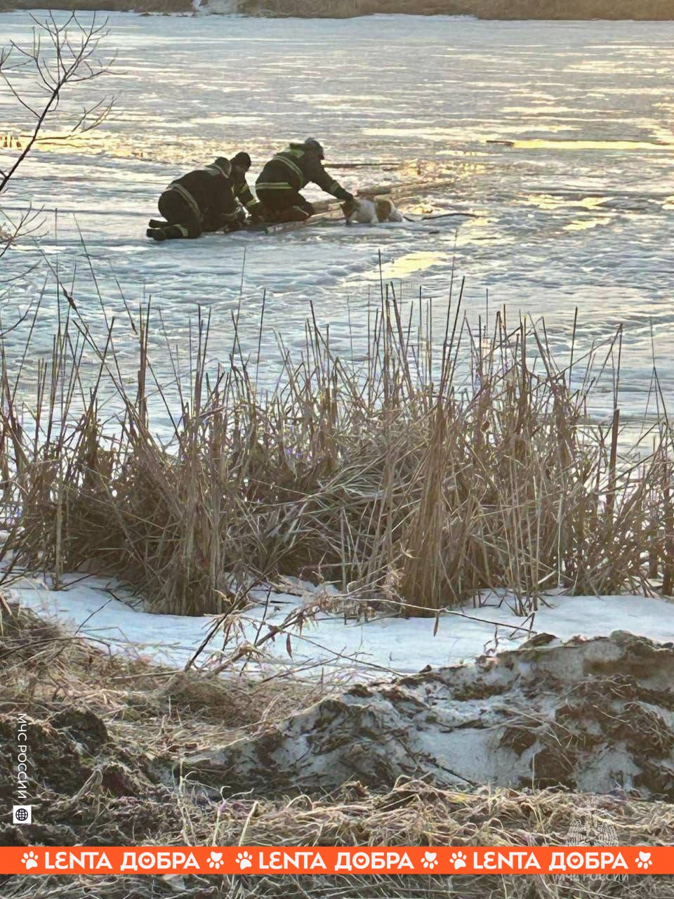 🙏 Сотрудники МЧС спасли провалившуюся под лёд бездомную собаку.