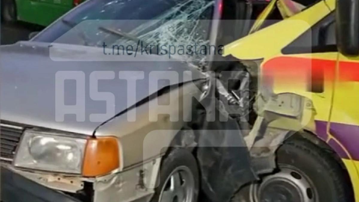Как сообщается в Telegram-канале kris_p_astana, травмы получила женщина, ехавшая в скорой с ребенком в качестве сопровождающей. Ребенка после ДТП повезли дальше.
