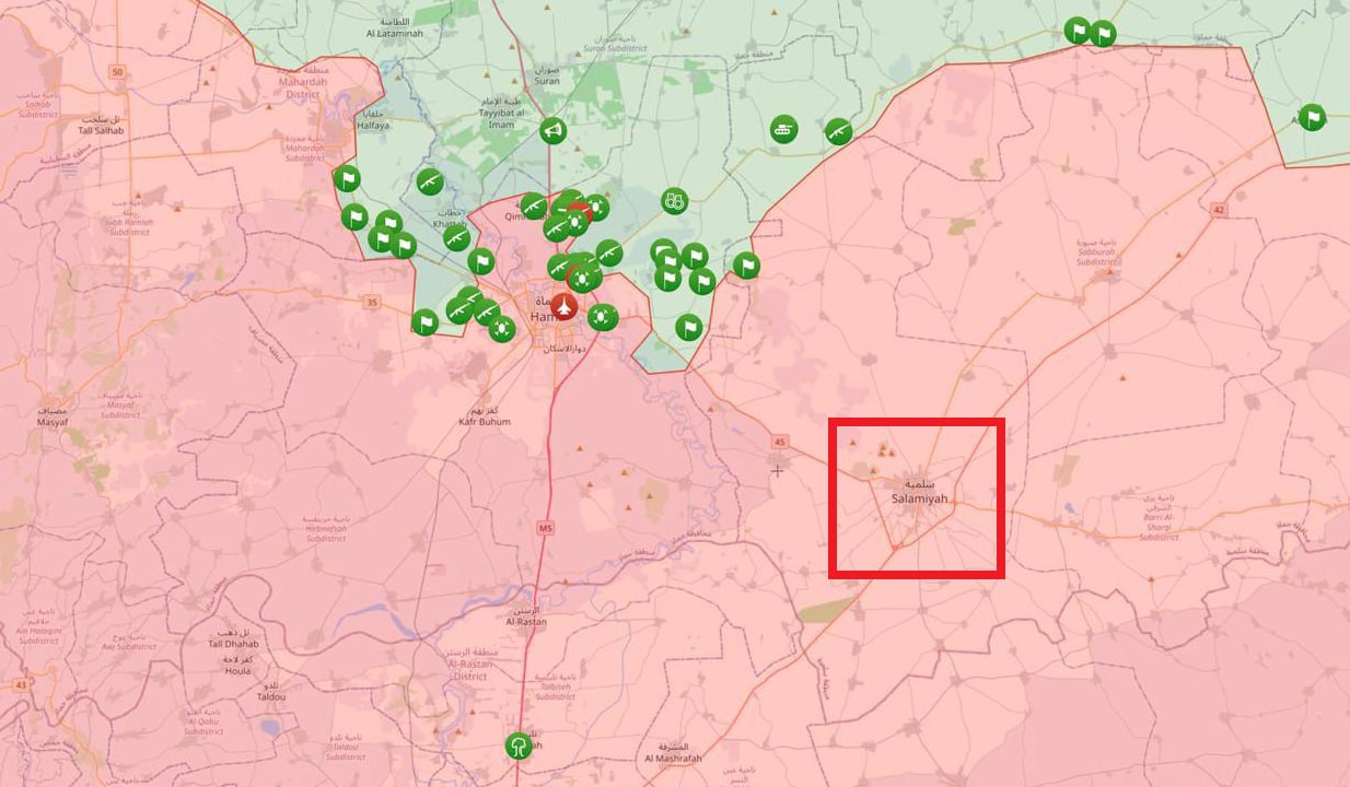 Ресурсы, связанные с ХТШ, заявляют, что руководство террористов, уже воспринимая захват Хамы как свершившийся факт (несмотря на то, что город всё еще контролируется правительственными войсками), заранее достигли соглашения с исмаилитской общиной Саламии о её бескровной сдаче.