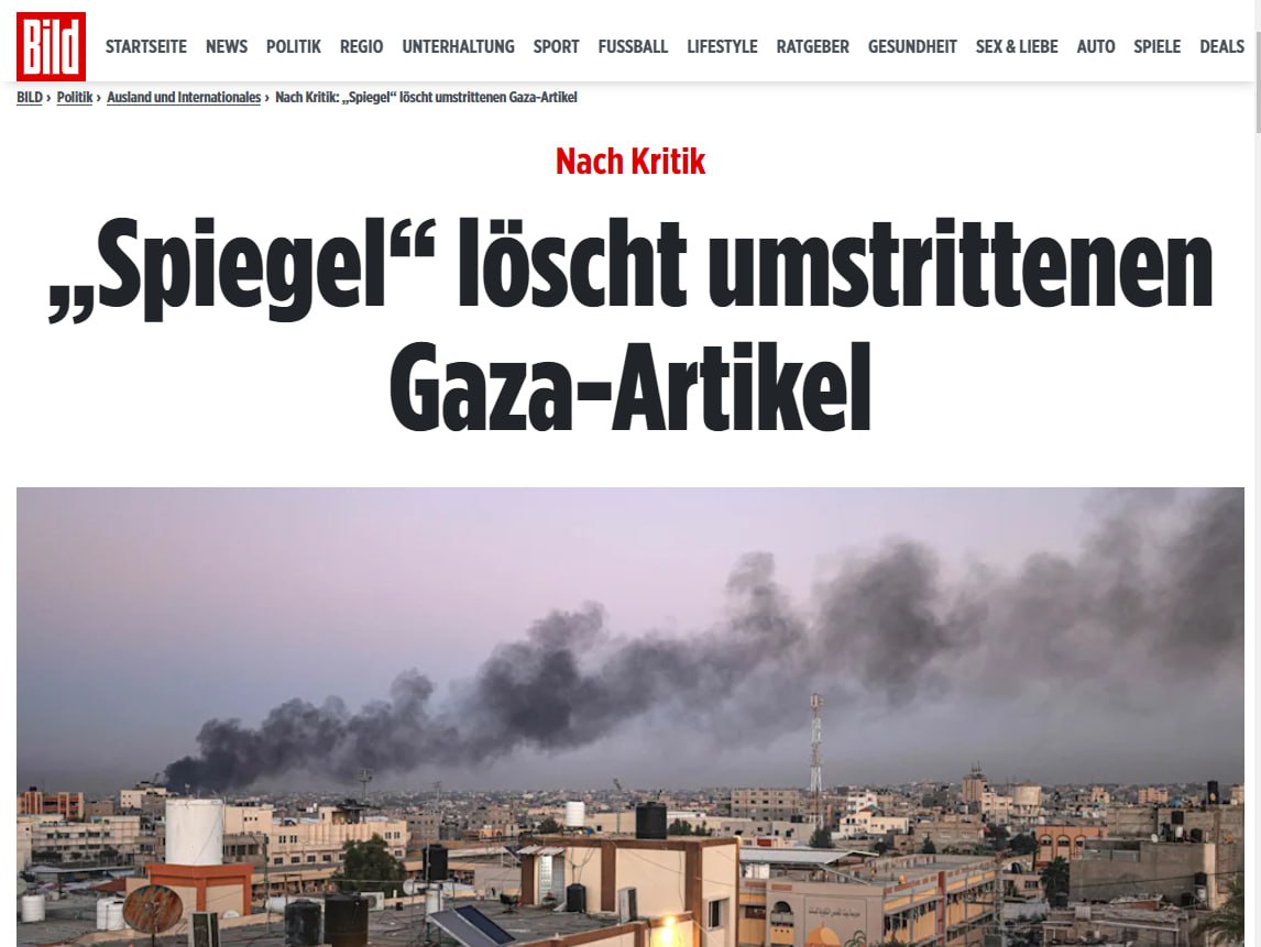 Bild: Немецкий Der Spiegel удалил статью с критикой израильских бомбардировок в секторе Газа.
