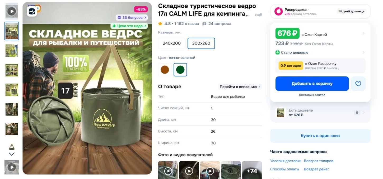 «Ведро отличное! Купил, набрал воды — час простояло, всё норм! Потом надоело тестировать — вылил, сложил и убрал в машину. Места не занимает вообще! А так всегда ведро с собой имеется!»