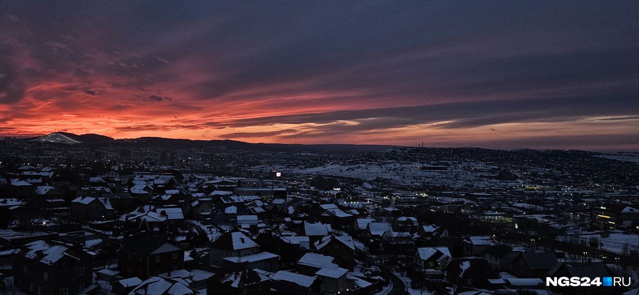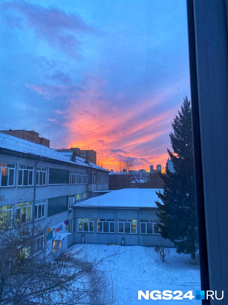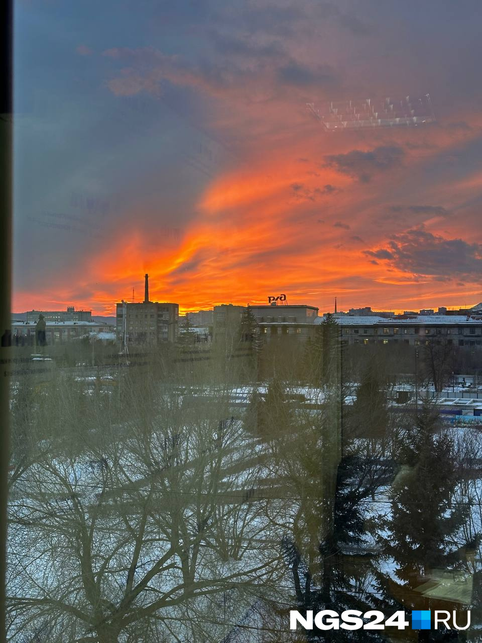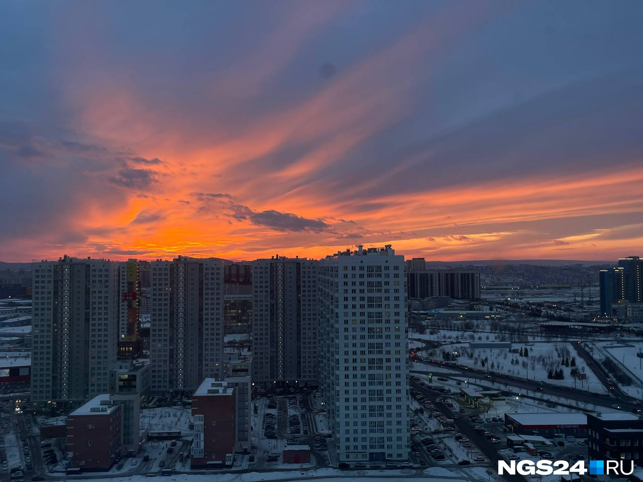Жители Красноярска в социальных сетях активно делятся фотографиями огненно-оранжевого заката, который можно было наблюдать сегодня вечером, 5 февраля.