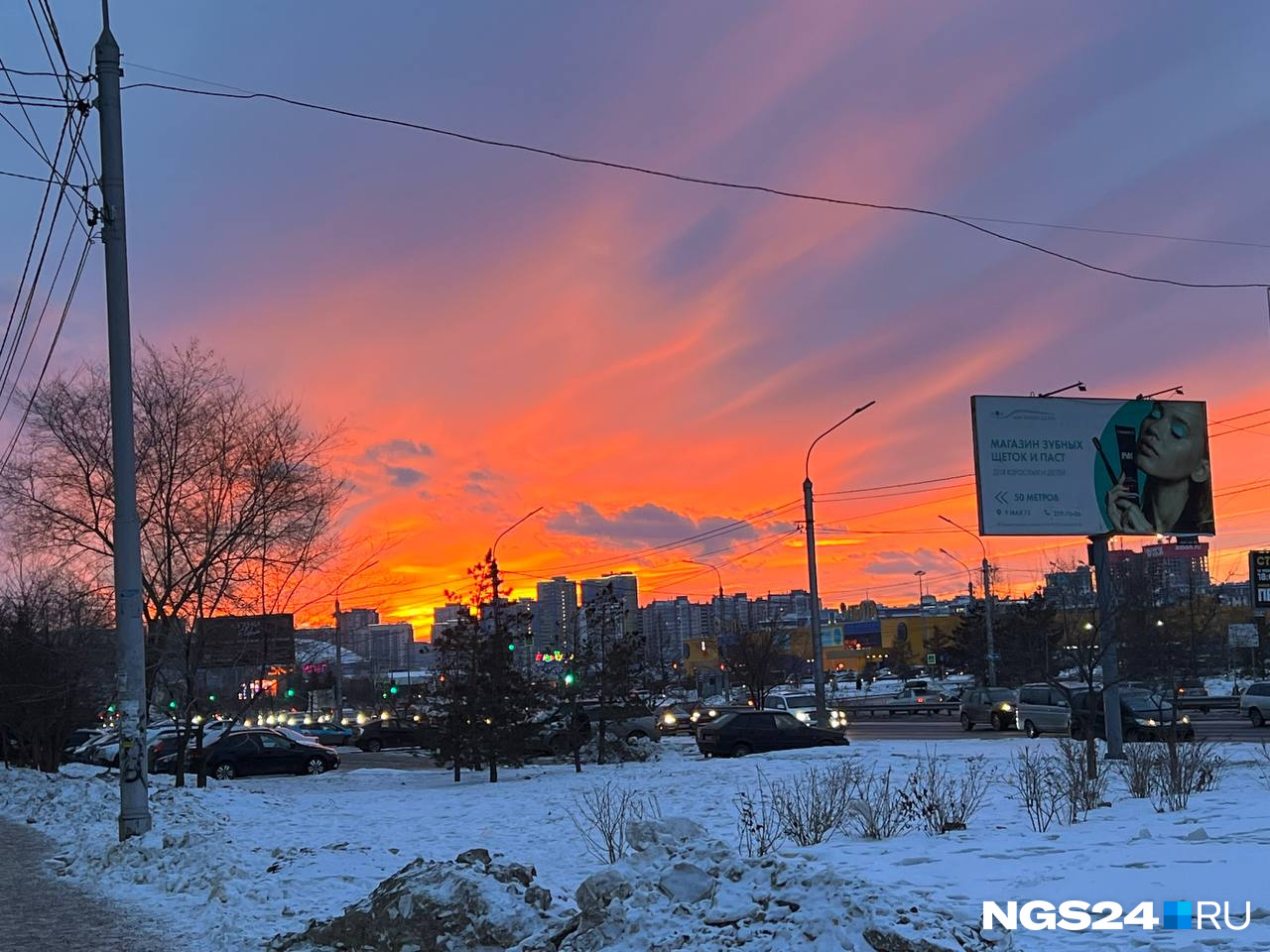 «Не хуже, чем на Пхукете»: красноярцы публикуют фотографии огненно-оранжевого заката