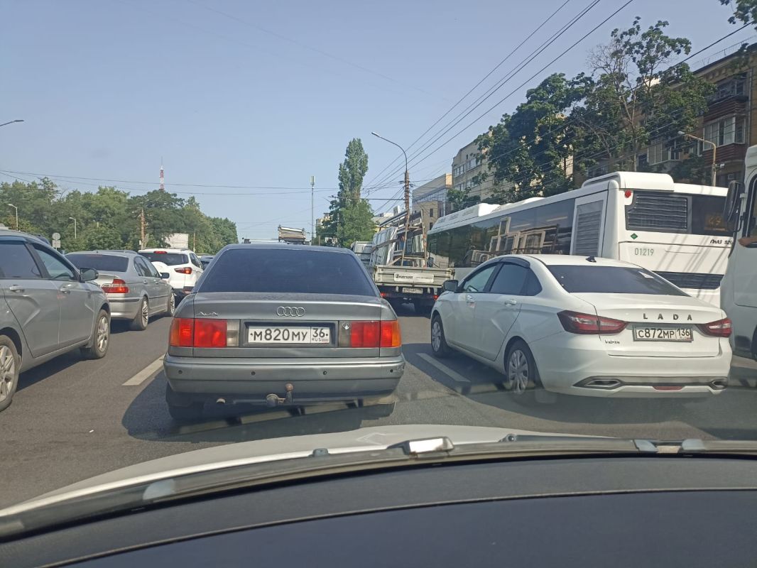 «Стою больше часа». Об огромной пробке на мосту сообщили воронежцы