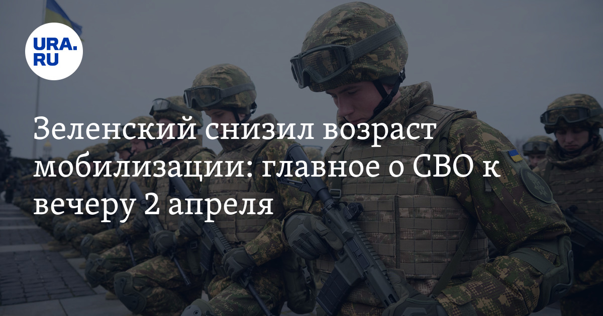 На Украине снижен возраст для мобилизации с 27 до 25 лет. Президент Украины Владимир Зеленский подписал соответствующий указ. URA.RU приводит главные новости о ситуации в зоне СВО к вечеру 2 апреля.