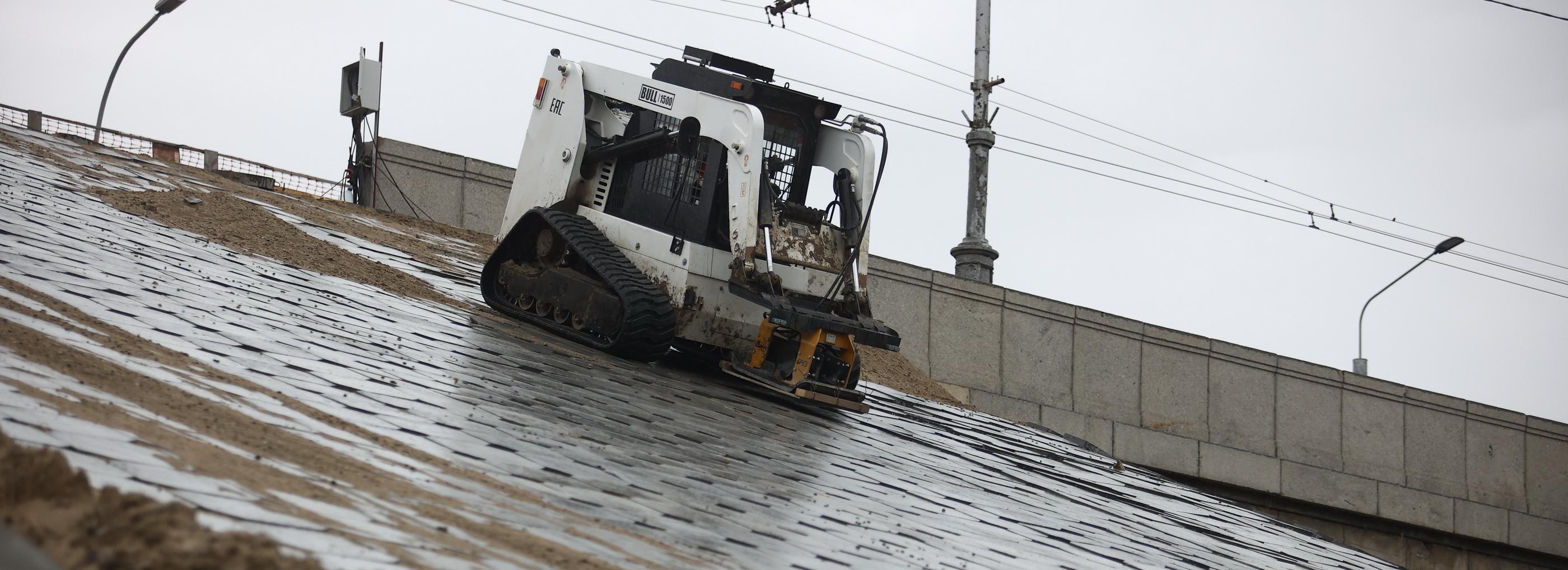 «Тротуарная консоль бетонирования закончена, деформационные швы у нас закончены, освещение закончено, остатки чугунного ограждения заказаны, оплачены нами. В ближайшее время они приедут и будут установлены. Закончены практически работы по гидроизоляции тротуарной части — там сейчас устанавливается напыляемая гидроизоляция.