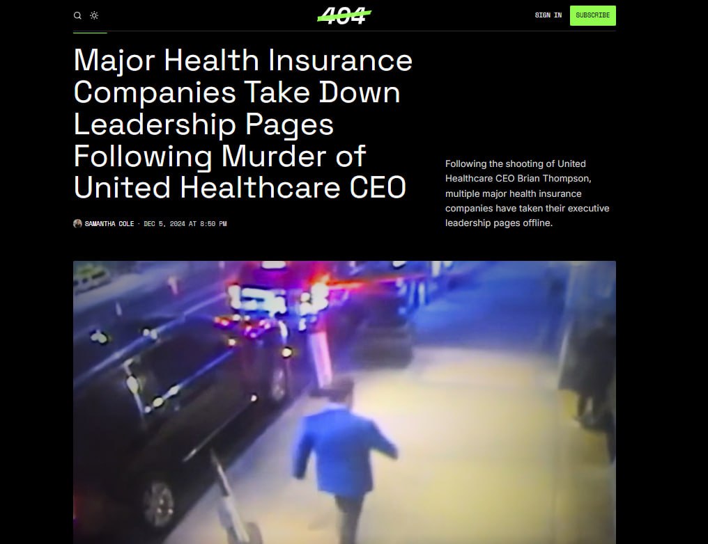 Крупнейшие компании медицинского страхования в США удалили страницы со списками руководства после убийства гендиректора «UnitedHealthcare»,