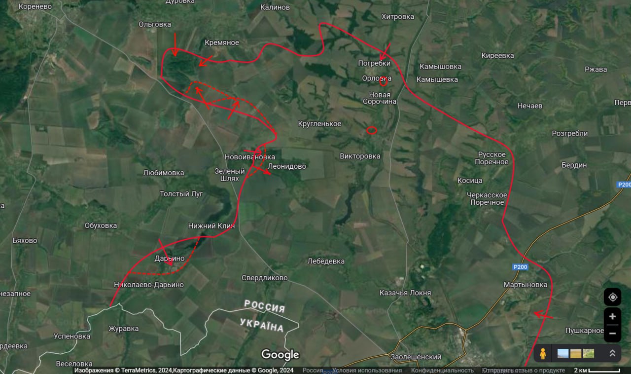 Южнее Суджи есть информация о наших частичных успехах западнее Черкасской Конопельки. Здесь мы также пытаемся дожать противника в районе Плёхово. А еще прощупываем Мартыновку.
