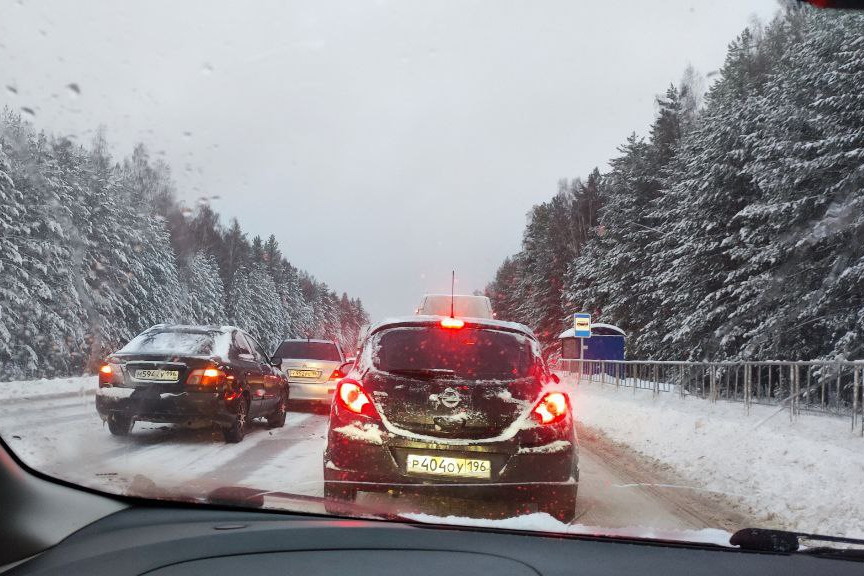 Из-за аварий на трассе скопилась пробка. Затруднено движение в обоих направлениях, но особенно — в сторону Екатеринбурга. Затор растянулся на пять километров.