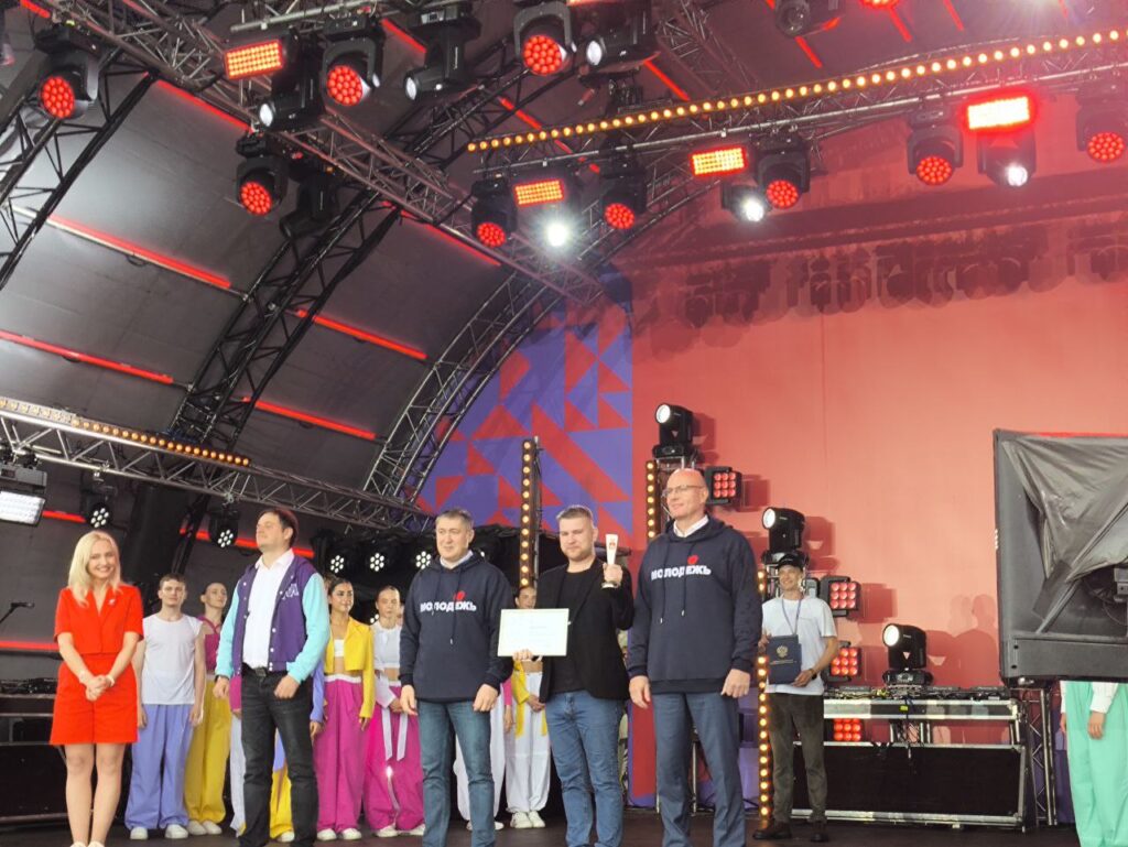 После телемоста со сцены озвучили победителя лидера Пермского края в сфере молодежной политики. Им стал коллектив некоммерческого Молодежного театра.
