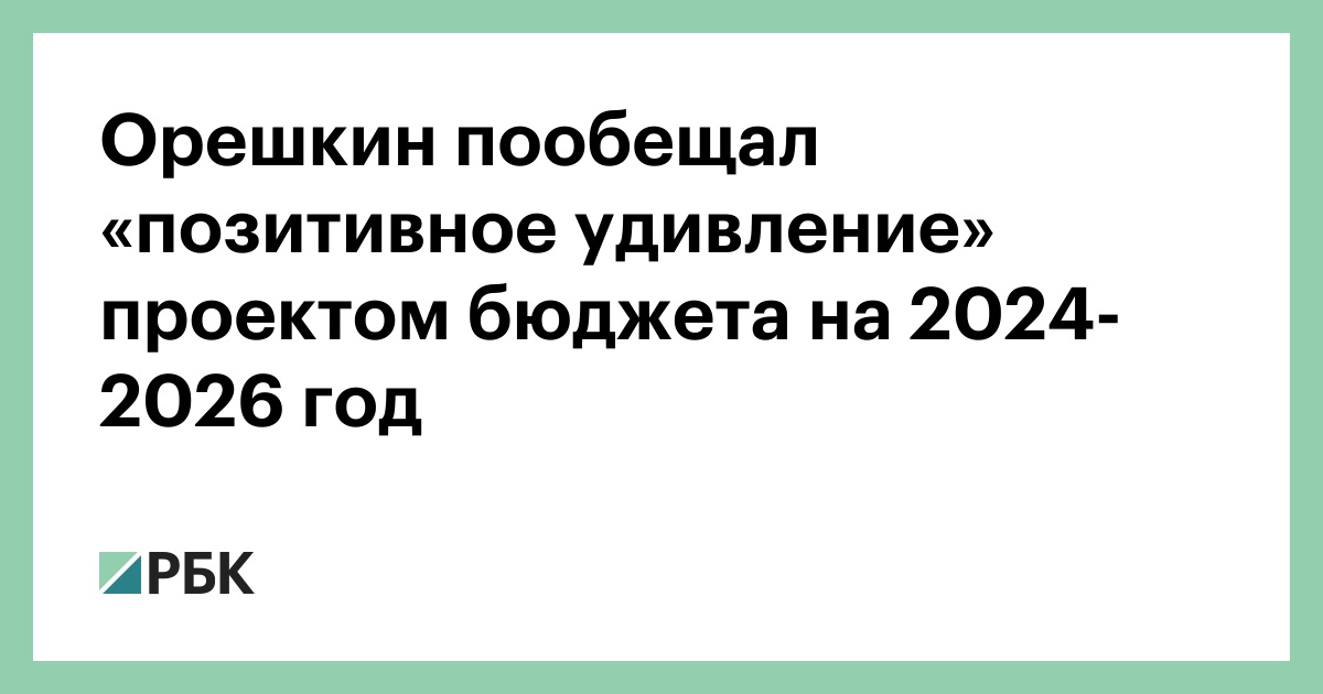 «Еще раз: зачем? [увеличивать налоговую нагрузку — РБК] У нас все любят пофантазировать, все любят какой-то себе апокалипсис придумать. Сейчас правительство закончит, буквально неделя осталась, через неделю правительство будет рассматривать цифры бюджета. Когда вы их увидите, это будет позитивное удивление. Поверьте мне», — заявил Орешкин.
