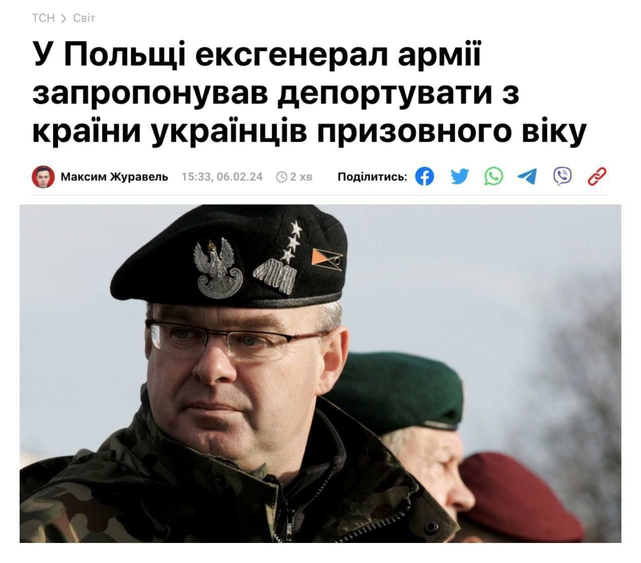 Польский генерал в отставке Вальдемар Скшипчак предложил депортировать из ЕС всех мужчин призывного возраста с Украины