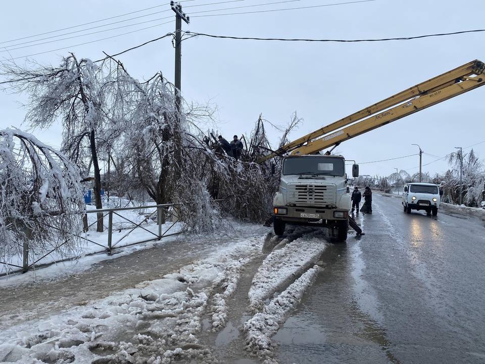В Котельниково Волгоградской области продолжают устранять последствия ледяного дождя. В городе создан оперативный штаб.