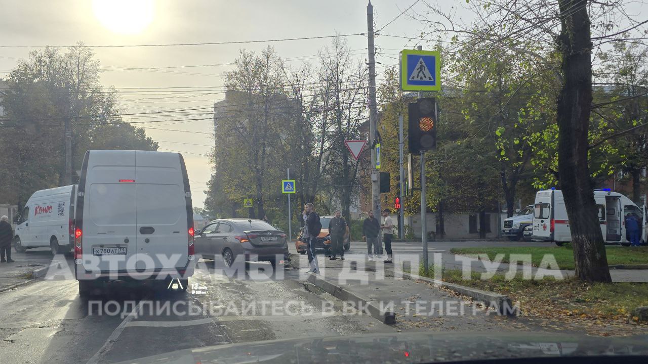 Сегодня днем, 7 октября, водители двух автомобилей устроили ДТП на пересечении улиц Кирова и Глинки в Туле. Об этом очевидцы происшествия рассказали в социальных сетях.