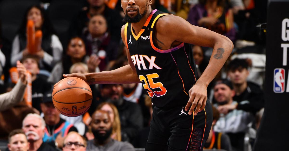 Passer la publicitéLeBron James, Kareem Abdul-Jabbar ou encore Kobe Bryant et Michael Jordan... Contre Memphis, Kevin Durant, 36 ans dont la moitié en NBA, a rejoint le cercle restreint des joueurs à plus de 30.000 points. Malheureusement pour l'ancien ailier de Seattle, d'Oklahoma City, de Golden State et de Brooklyn, ses 34 points n'ont pas suffi à faire gagner les Suns, débordés par les Grizzlies (119-112).